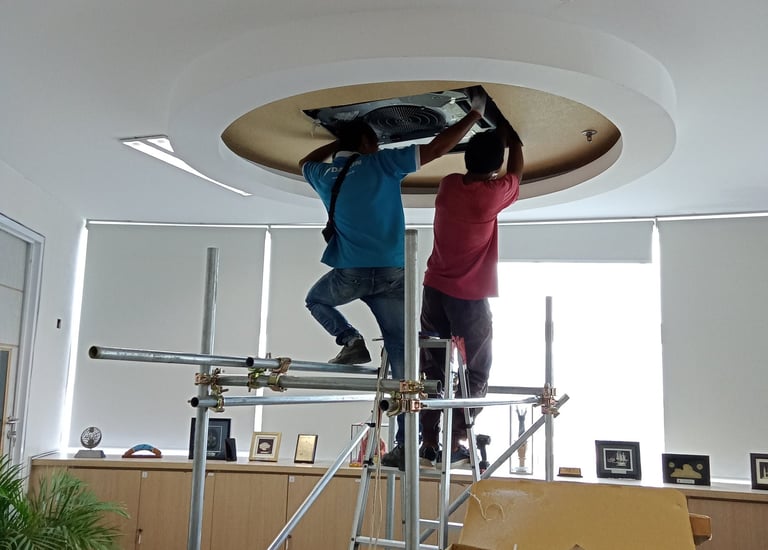 Pemasangan AC split, inverter, cassette, standing floor, split duct, Central dan VRV/VRF dengan teknisi ahli.